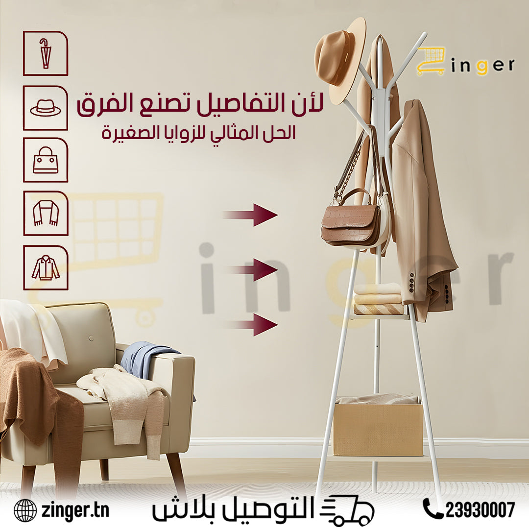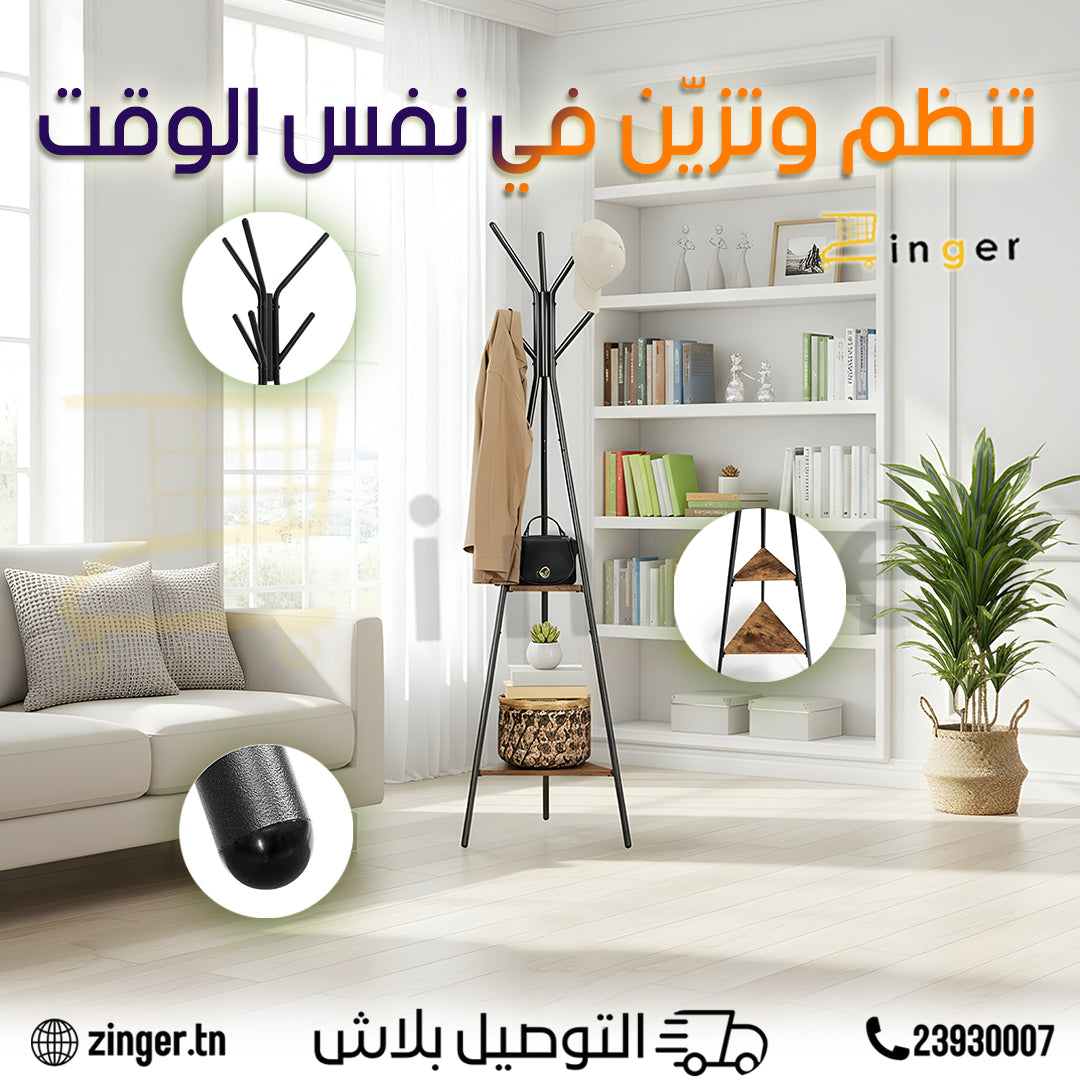 الحل بسيط وأنيق! نقدمولك حامل المعاطف والمنظّم الذكي منتج يجمع بين الخدمة و التصميم بش يخلي مدخل دارك ولا بيتك يلمع بالنظام